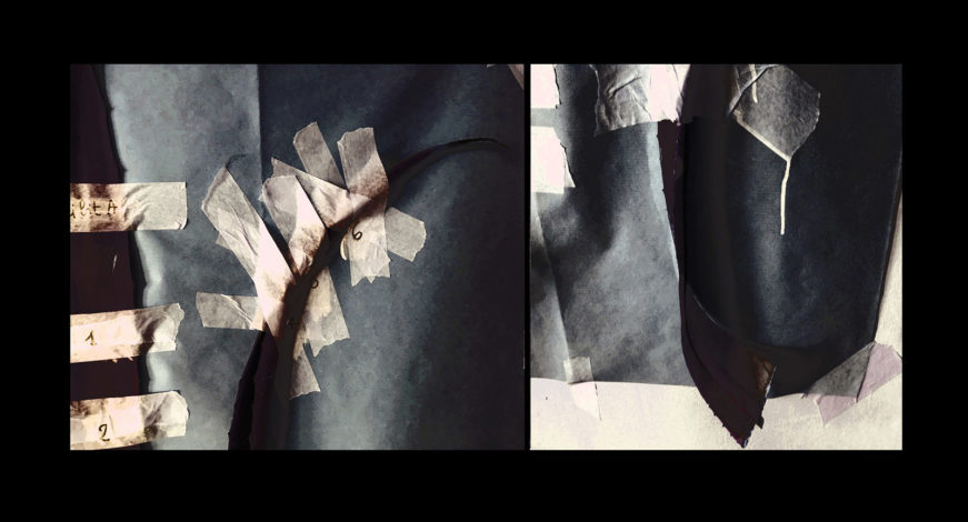 Dunque la dicotomia di un sistema terrestre fagocitato anche dalla incoerente spesso contraddittoria comunicazione massmediatica Il concetto di perturbazioni climatiche implica infatti fattori oltre che scientifici giuridici ed etici anche politici ed economici- con le prevedibili conflittualità che ne derivano. Il progetto mette in mostra la percezione di questa aritmia e del raggiungimento di una ormai quasi totale artificialità, invasiva irreversibile che si risolve nella laconica rappresentazione di immagini di natura scheletrizzata – di una sua rudimentale archiviazione, che la reclude in fragili perimetri cartacei sigillati con impermanente nastro adesivo o dentro un trasparente quasi onirico stampo in Plexiglass. Dunque si direbbe l’altra faccia, quella debole frangibile caduca, eppure profondamente sentimentale ed “umana” di un universo tecnologico, pubblicitario e genericamente antropologico e culturale tenacemente e vittoriosamente imperante- che ha trasformato la natura e dunque lo stesso pianeta Terra in oggetto e che con irresponsabile sconsiderata disattenzione, ne dimentica o ne ignora persino il